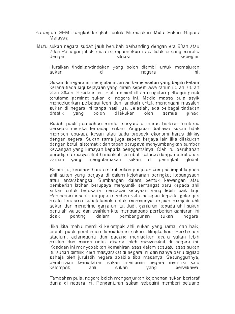 Contoh Karangan Berkaitan Sukan Pdf